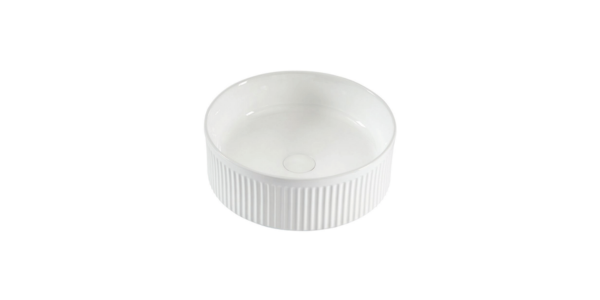 Seno: Sobre encimera Material: Cerámica Acabado: Blanco brillo acanalado Certificaciones: CE Ancho: 37cm Fondo: 37cm Alto: 13cm Referencia: LAVHINOJOD37CEBL